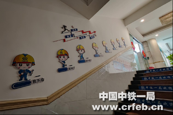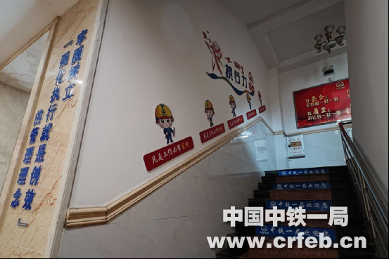在通往二樓的左拐墻面上,張貼著“牢固樹立‘強化執行就是創效’的管理理念”,警示著員工要養成、執行猶如家規的工作指示、通知和要求。行走在樓梯臺階時,左側墻面張貼著“凡是工作必帶目標”“凡是目標必帶計劃”“凡是計劃必帶方案”的延伸執行力內容的標語;樓層拐角墻面,是新時代中國中鐵主人翁精神標語,也是作為項目部員工“堅定理想信念,以更加飽滿的精神狀態、更加昂揚的奮斗姿態,展示新時代‘開路先鋒’形象”的規定;隨著臺階上走左側墻張貼的“我問了”“我聽懂了”“我理解了”“我學會了”“我記住了”標語,不正像我們人生一步步的成長完美過程,也提醒著我們要刻苦勤奮,要努力拼博,要奮發向上,樹立遠大理想,才能有所收獲,進而取得成功。