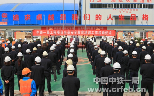 4月22日,中鐵一局工程項(xiàng)目全員安全教育培訓(xùn)工作啟動(dòng)儀式在西成客專項(xiàng)目部戶縣軌枕廠(物貿(mào)公司)舉行,拉開了中鐵一局所有在建工程項(xiàng)目全面、深入、長(zhǎng)期開展全員安全教育培訓(xùn)工作的序幕。