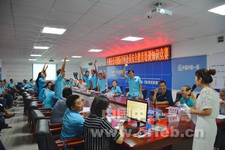 此次競(jìng)賽結(jié)合全員安全教育培訓(xùn)活動(dòng)要求,競(jìng)賽內(nèi)容既有安全操作規(guī)范、安全法規(guī)類(lèi)題目,又有緊密聯(lián)系施工現(xiàn)場(chǎng)安全管理、安全操作的實(shí)踐類(lèi)題目,競(jìng)賽由個(gè)人必答題、搶答題、集體共答題3個(gè)環(huán)節(jié)組成。參賽隊(duì)員在比賽過(guò)程中充分發(fā)揮聰明才智,個(gè)人必答題環(huán)節(jié)往往是主持人話音剛落,選手的答案便脫口而出;最為激烈的搶答題環(huán)節(jié),未等主持人念完題目,就有選手高高舉起手臂搶著答題,前兩個(gè)環(huán)節(jié)中幾乎沒(méi)有任何一個(gè)選手出現(xiàn)失誤;集體共答題環(huán)節(jié),選手抓住每題得分點(diǎn)詳盡敘述,表現(xiàn)出了較強(qiáng)的團(tuán)隊(duì)精神和個(gè)人實(shí)力,整個(gè)競(jìng)賽你追我趕,互不示弱,場(chǎng)面氣氛熱烈。競(jìng)賽中還融入了觀眾參與搶答,調(diào)動(dòng)了全體員工共同參與的熱情。經(jīng)過(guò)近一個(gè)小時(shí)的激烈決逐,最終各代表隊(duì)按得分多少?zèng)Q出第1、2、3名,東平2號(hào)隧道分部代表隊(duì)勇奪第一名,佛肇項(xiàng)目部代表隊(duì)贏得第二名,東平新城車(chē)站分部排名第三。公司領(lǐng)導(dǎo)為參加競(jìng)賽代表隊(duì)選手頒發(fā)了獎(jiǎng)品和紀(jì)念品。