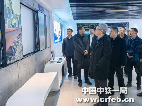 金武一行還深入項目信息指揮中心,詳細了解了工程運輸管理調(diào)度系統(tǒng)、長鋼軌群吊智能集控系統(tǒng)等管理平臺應用情況。在聽取分部負責人趙紫京就鋪軌基地的智能化建設成果和目前施工情況的匯報后,金武對中鐵一局在鋪軌施工中積極探索創(chuàng)新智能化工藝工裝給予高度贊揚。