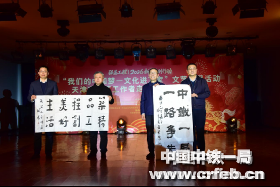 凱歌辭舊歲,駿馬迎新春。2月2日,“強基工程”2026新春特別行動天津市文聯“我們的中國夢—文化進萬家”文藝惠民活動走進中鐵一局。天津市文聯黨組成員、二級巡視員劉志勇,中國書協副主席、天津市書協主席張建會,河北區委副書記楊君毅,區人大常委會副主任、區總工會主席蘭香,中鐵一局黨委副書記、工會主席劉為帛,工會副主席張瑞生,黨委宣傳部負責人出席活動。