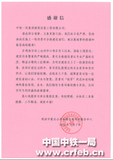 雞西市冰上運動中心項目收到業主單位“感謝信”