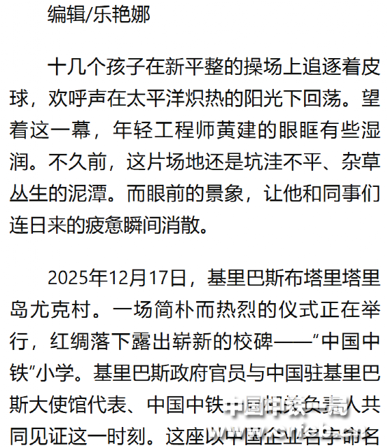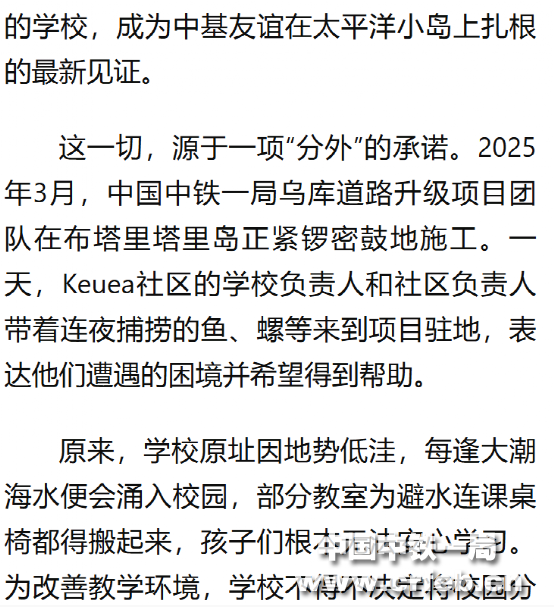 新華社客戶端:太平洋小島嶼上,有一所“中國中鐵”小學