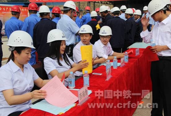 山西能源交通投資有限公司安監(jiān)局局長張寶亭、山西地方鐵路有限責(zé)任公司副總經(jīng)理郭彬,山西靜靜鐵路有限公司董事長張國華、總經(jīng)理王孝國、安全總監(jiān)郭海珍,靜樂縣安監(jiān)局局長任文俊,四公司山西工程事業(yè)中心總經(jīng)理蔣紅偉以及靜靜鐵路全線七個(gè)標(biāo)段的工人代表共計(jì)200余人參加活動。