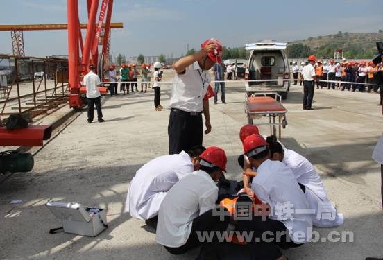 本次“安全生產(chǎn)月”宣傳咨詢?nèi)栈顒又校墓眷o靜鐵路項(xiàng)目部還針對施工中的高空墜落事故風(fēng)險(xiǎn)進(jìn)行了應(yīng)急救援預(yù)案演練。演練設(shè)安全警戒組、醫(yī)療救護(hù)組、綜合協(xié)調(diào)組、物資保障組、事故調(diào)查組,嚴(yán)格按照救援隊(duì)伍、救助車輛、救援物資應(yīng)急保障要求和突發(fā)事件處置預(yù)案組織進(jìn)行,從發(fā)現(xiàn)險(xiǎn)情、報(bào)告報(bào)警、救援救護(hù)、疏導(dǎo)警戒、事故調(diào)查、處理善后,每個(gè)過程都井然有序。大約15分鐘后,通過現(xiàn)場應(yīng)急指揮和各營救小組緊密配合,高空墜落事故應(yīng)急救援演練取得了圓滿成功,充分展示了中鐵一局在事故預(yù)防和救援方面的能力。