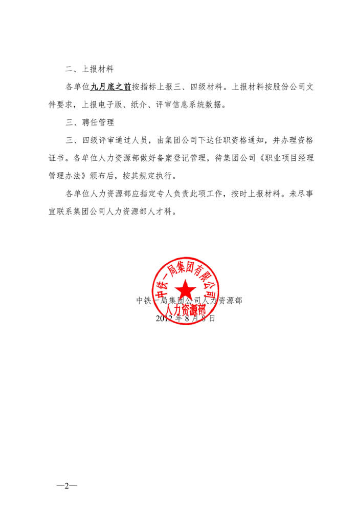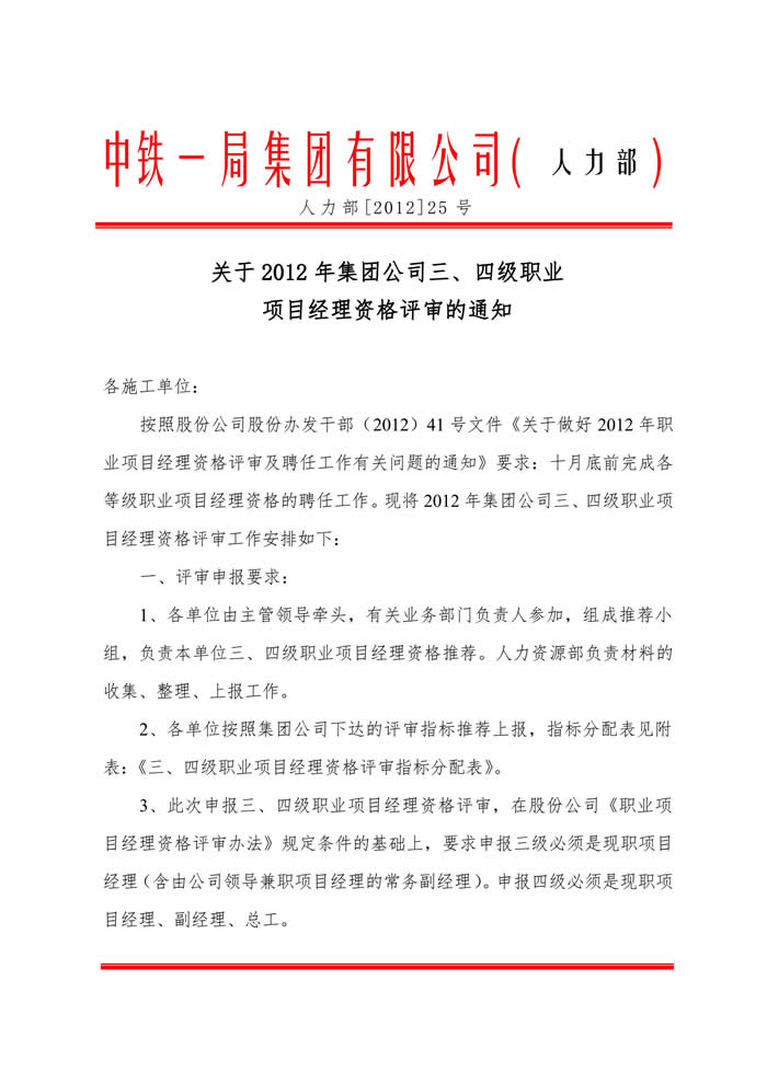 關于2012年集團公司三、四級職業項目經理資格評審的通知