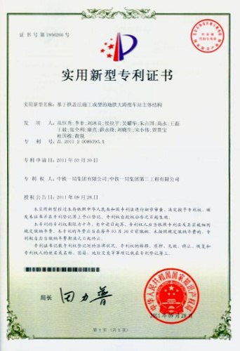 基于拱蓋法施工成型的地鐵大跨度車站主體結構”獲得國家知識產權局實用新型專利授權。