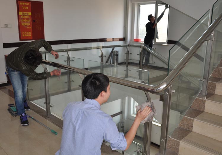 認(rèn)真細(xì)致的擦玻璃不放過一個(gè)污點(diǎn)