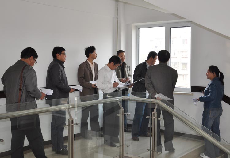 衛(wèi)生評比小組檢查公共區(qū)域衛(wèi)生