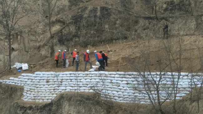 活動(dòng)開(kāi)始后,項(xiàng)目部的青年們個(gè)個(gè)朝氣蓬勃,在項(xiàng)目團(tuán)支部書(shū)記劉彤涵的帶領(lǐng)下,經(jīng)過(guò)近1個(gè)小時(shí)的山路攀爬徒步,來(lái)到了當(dāng)?shù)厍鍧究h石咀驛鎮(zhèn)糜山河村,同當(dāng)?shù)卮迕褚黄鹦拗湫碌谋憬莅踩娜粘J褂玫缆贰4蠹壹娂姄]動(dòng)鐵鍬,拿起編織袋,將泥土收集、搬運(yùn)、規(guī)整,沒(méi)有人在意臉上被灰塵鋪滿,沒(méi)有人在意腳上被潮濕泥土浸臟。大家全神貫注的將泥土碼齊、拍平,盡心盡力做好每一項(xiàng)修筑流程。