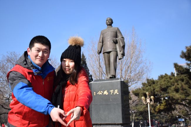 沈陽地鐵4號(hào)線青年志愿者清掃公園建筑物