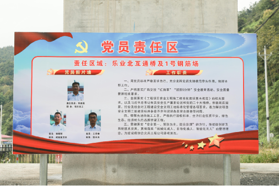 走進(jìn)樂業(yè)北互通橋施工區(qū)域,一塊偌大的“黨員安全責(zé)任區(qū)”告示牌豎立眼前,以黨員骨干為核心,青年團(tuán)員為主力的紅色力量為施工安全保駕護(hù)航。