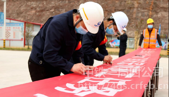 3月14日,公司黔江制梁場“防疫沖在前 復工勇爭先”高揚黨旗主題活動暨“大干180天 堅決完成施工任務目標”勞動競賽儀式在梁場1號臺位處正式啟動,成都大西南鐵路監理公司涪秀二線項目監理站總監楊恩、中鐵一局涪秀二線項目經理部負責人仇志龍及黨工委書記趙建光出席本次儀式。