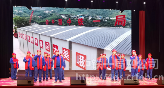 晚會現場,項目職工身著工裝、手持國旗,將大橋施工場景融入舞臺背景。當熟悉的旋律響起,項目職工以飽滿的熱情、洪亮的歌聲深情演繹《我和我的祖國》,瞬間點燃全場共鳴。這支由項目一線職工組成的合唱團,利用業余時間精心排練,用真摯的愛國之聲展現了中鐵一局建設者投身地方建設、服務區域發展的赤誠初心。