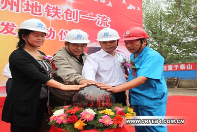 石銀生等四位勞模代表(右一)在鄭州地鐵一號線盾構(gòu)啟動儀式上按下始發(fā)按鈕