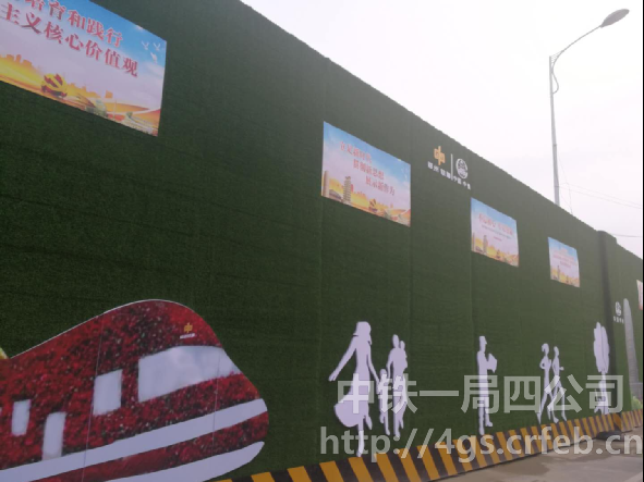 項目部的工點都處在繁華街區(qū),又是挨著鄭州火車站,在還沒有建點之前,建設(shè)方就對文明施工和形象展示做出了明確要求,提出檔次和標(biāo)準(zhǔn)都不能低,既要有傳統(tǒng)更要有創(chuàng)新,特別是對火車站的工地和項目部駐地要重點打造。項目黨支部書記樊榮說:形象展示既是業(yè)主的要求,更是我們企業(yè)的需要,這是宣傳中鐵一局品牌,彰顯企業(yè)良好形象的大好機會。怎么才能在傳統(tǒng)的基礎(chǔ)上實現(xiàn)創(chuàng)新,樊榮這個搞工程技術(shù)出身的支部書記可是沒少動腦筋,對施工圍檔全部采用仿綠草皮全包,對文化墻進(jìn)行精心設(shè)計制作,展示內(nèi)容豐富,標(biāo)識醒目大氣,給市民帶來了強烈的視覺沖擊。