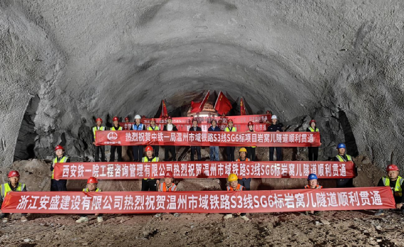 浙江溫州訊:10月30日上午,由中鐵一局承建的溫州市域鐵路S3線巖窩兒隧道順利貫通,標志著溫州市域鐵路S3線建設取得重大階段性突破,為全線建成通車按下了“加速鍵”。