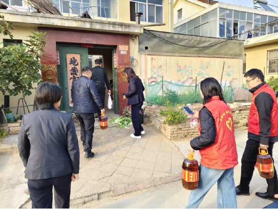 當天下午,膠南街道民政科代表、雙鳳山路社區代表、秦家莊村委會成員、西海岸建設分公司代表、總包部人員以及中鐵一局青島地鐵6號線二期項目部的工作人員帶著精心準備的大米、面粉和食用油等走進老人家中,為他們送去關懷與溫暖,讓老人們真切感受到了社會的關愛與溫暖。