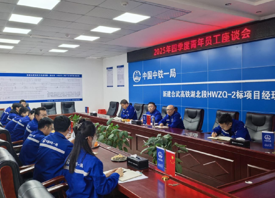 湖北麻城訊:正值合武高鐵建設沖刺四季度的關(guān)鍵節(jié)點,11月9日,中鐵一局合武高鐵2標三分部召開青年員工座談會。分部領(lǐng)導班子、各部門負責人與12名青年員工代表齊聚一堂,以“青春攻堅正當時、逐夢高鐵建新功”為主題,共話成長感悟,共商攻堅良策,為項目高質(zhì)量推進注入青春動能。