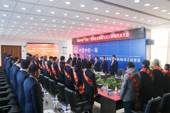 浙江杭州訊:1月24日,中鐵一局杭州機場高鐵3標項目部隆重召開2025年度“雙先”表彰會議暨職工民主管理代表大會。會議聚焦2025年工作復盤總結與2026年目標任務部署,以表彰先進樹標桿、凝聚共識聚合力,為項目沖刺收官、爭創橋梁精品工程注入奮進動力。項目部領導班子、先進集體及個人代表、全體職工民主管理代表參加此次會議。