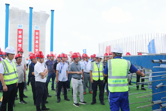 杭州鐵路樞紐工程建設指揮部所轄杭州機場高鐵、衢麗鐵路、金建鐵路、寧波北侖復線、溫玉鐵路、甬舟鐵路等10個工程項目設計、監理、參建單位代表共計120余人,在杭州機場高鐵3標江東特大橋43#墩智慧造橋機施工現場交流。杭州鐵路樞紐工程建設指揮部副指揮長徐俏東,中鐵一局華東地區指揮部指揮長楊俊、安全生產稽查隊(管控組)第二隊隊長王宇鴻,五公司總經理武濤、副總經理兼杭州機場高鐵3標項目負責人劉利鋒、副總經理廖俊松參加現場交流會。