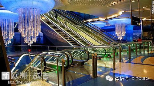 迪拜現在的地鐵系統使用的是無人駕駛車輛。在Khalid Bin Al Waleed站,乘客們可以抬頭看見天花板上美麗的水母,仿佛身處于海洋世界。