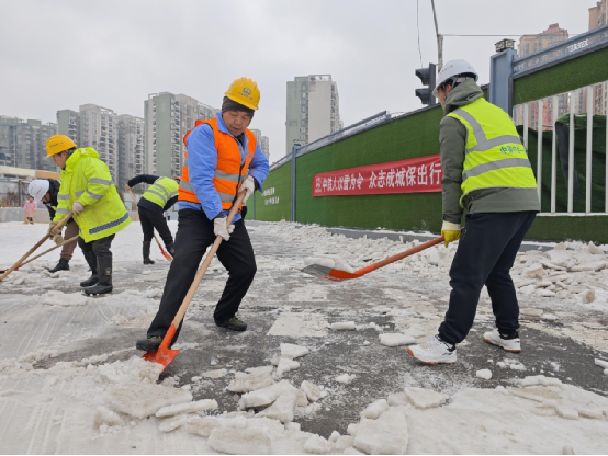 “武漢今天路面積雪較深,除確保工地內建筑、施工人員的安全外,還要力保工地周邊居民平安出行,彰顯一局央企的責任擔當。”隨著項目負責人在早交班會上的工作安排,中鐵一局武漢12號三標項目部全體人員也投入到迎風戰雪保出行的融雪的戰斗中。