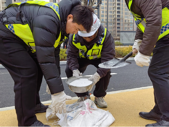寒風凜冽中揮動鐵鍬的“熒光綠”,施工現場周邊干凈清爽的道路,是中鐵一局人不畏嚴寒、堅守崗位的真實寫照。在他們的努力下,周邊道路交通從冰封中逐步恢復暢通,市民出行安全得到了有效保障。一局志愿者們用滿腔地熱忱,在冰雪中展示“熱辣滾燙”的大干場面,彰顯了央企的社會擔當。
