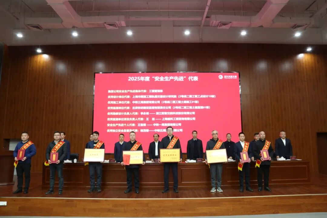 1月16日,紹興市軌道交通集團有限公司召開2026年安全生產暨二期建設推進工作會,會議宣布了2025年度綜合考評結果。中鐵一局紹興地鐵2號線7標項目榮獲年度綜合考評第一名,被授予“優勝單位”榮譽;紹興應急搶險總隊勇奪安全生產考評第三方服務第一名,獲評“優秀第三方服務單位”。中鐵一局黨委副書記、工會主席劉為帛代表企業上臺領獎。華東地區指揮部副指揮長、浙江經營部總經理馬整,城軌公司總經理邵海清、副總經理何學科參加會議。