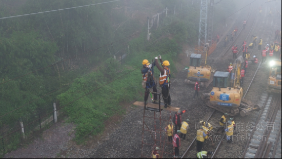 施工期間,接觸網(wǎng)專業(yè)累計(jì)完成基礎(chǔ)施工178處、支柱組立148根、硬橫跨架設(shè)10組、下錨補(bǔ)償裝置安裝22套,架設(shè)承導(dǎo)線11.96條公里、回流線7.1公里,為列車牽引動(dòng)力提供條件;電力專業(yè)完成銅罐驛遠(yuǎn)動(dòng)間與牟家遠(yuǎn)動(dòng)間施工及調(diào)試,并于11月25日成功送電,為通信與信號(hào)專業(yè)提供了調(diào)試及信號(hào)倒替的電力保障;