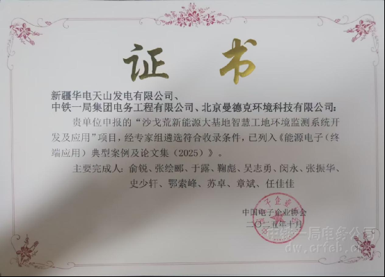 (徐州訊)近日,2025年(第二屆)能源電子產(chǎn)業(yè)高質(zhì)量創(chuàng)新發(fā)展大會在江蘇徐州圓滿召開。會上,公司聯(lián)合申報的《沙戈荒新能源大基地智慧工地環(huán)境監(jiān)測系統(tǒng)開發(fā)及應(yīng)用》與《新疆華電天山北麓基地610萬千瓦新能源項目新能源智慧生產(chǎn)管理平臺智能感知系統(tǒng)》兩項案例,成功入選《能源電子(終端應(yīng)用)典型案例及論文集(2025)》。
