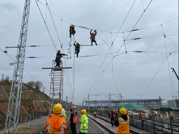 下午2點(diǎn),西安東站普速場(chǎng),隨著對(duì)講機(jī)下達(dá)180分鐘天窗封鎖命令,90名接觸網(wǎng)工人有序進(jìn)入護(hù)欄網(wǎng)內(nèi)。“為保證普速場(chǎng)開通節(jié)點(diǎn),順利將既有西康便線從南北兩側(cè)撥接至新建普速場(chǎng)線路,我們調(diào)配資源、優(yōu)化方案,從其他項(xiàng)目選配接觸網(wǎng)上部熟練工,全力保障施工節(jié)點(diǎn)。”接觸網(wǎng)專業(yè)生產(chǎn)副經(jīng)理張利斌介紹。