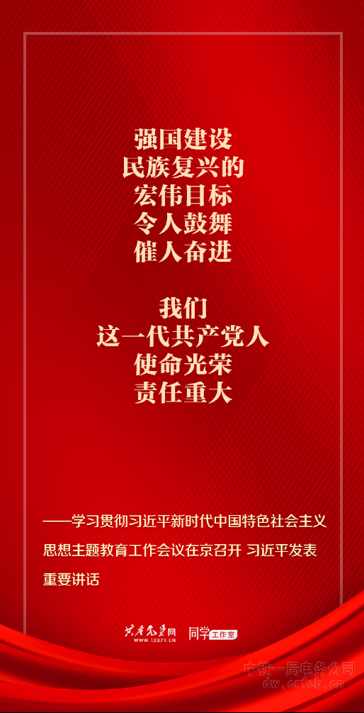 ●我們要以這次主題教育為契機,加強黨的創新理論武裝,不斷提高全黨馬克思主義水平,不斷提高黨的執政能力和領導水平,為奮進新征程凝心聚力,踔厲奮發、勇毅前行,為全面建設社會主義現代化國家、全面推進中華民族偉大復興而團結奮斗。