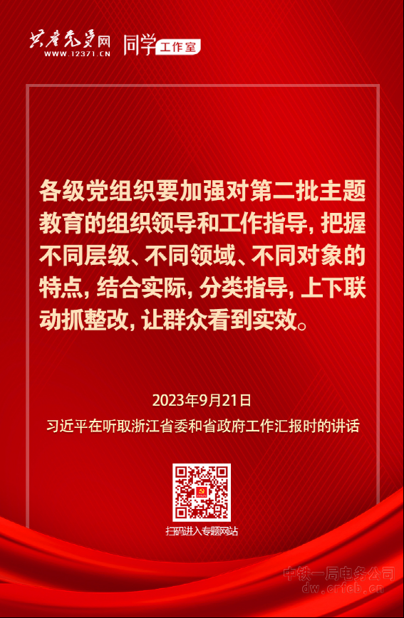 2023年9月21日,習(xí)近平總書(shū)記在聽(tīng)取浙江省委和省政府工作匯報(bào)時(shí)指出,各級(jí)黨組織要加強(qiáng)對(duì)第二批主題教育的組織領(lǐng)導(dǎo)和工作指導(dǎo),把握不同層級(jí)、不同領(lǐng)域、不同對(duì)象的特點(diǎn),結(jié)合實(shí)際,分類指導(dǎo),上下聯(lián)動(dòng)抓整改,讓群眾看到實(shí)效?!军c(diǎn)擊學(xué)習(xí)】