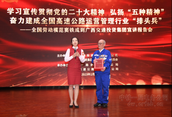 2月24日,由廣西交通投資集團(tuán)有限公司主辦,中鐵一局集團(tuán)有限公司、南寧高速公路運(yùn)營有限公司承辦的“學(xué)習(xí)宣傳貫徹黨的二十大精神,弘揚(yáng)‘五種精神’奮力建成全國高速公路運(yùn)營管理行業(yè)‘排頭兵’——全國勞模、全國優(yōu)秀共產(chǎn)黨員竇鐵成宣講報(bào)告會(huì)在廣西南寧舉辦。廣西交投集團(tuán)副總經(jīng)理陳智杰,中鐵一局集團(tuán)副總經(jīng)理尚武孝出席了報(bào)告會(huì)。