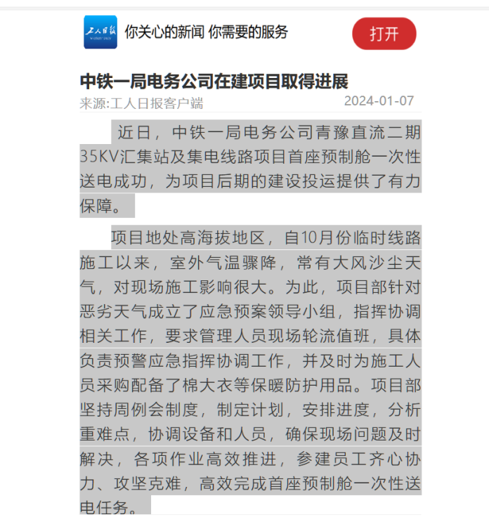 【工人日報】中鐵一局電務公司在建項目取得進展