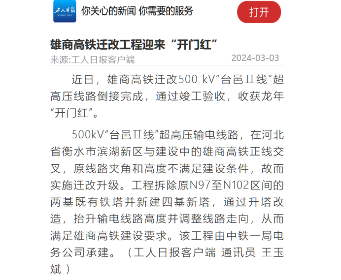 【工人日?qǐng)?bào)】雄商高鐵遷改工程迎來(lái)“開(kāi)門(mén)紅”
