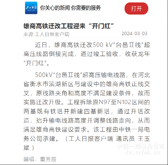 【工人日報】雄商高鐵遷改工程迎來“開門紅”