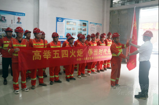 五四青年節到來之際,六分公司特意在項目上組織開展了“青年突擊隊”授旗儀式,進一步激發項目青年員工的工作激情和干勁活動當日,六分公司安質總監朱江濤對成立“青年突擊隊”的目的與重要意義進行了簡單介紹,并向青年突擊隊隊長徐祥祥進行授旗。徐祥祥帶領全體隊員進行宣誓并代表青年突擊隊作表態發言。