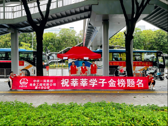 在無錫,八分公司無錫至江陰城際軌道供電項目聯合錫澄中車S1線總包部、信號標,開展了“青年志愿行 愛心助高考”黨建聯盟活動。志愿者們一早便在考場外搭建涼棚,設立高考志愿服務站點,為高考學子與送考家長提供免費愛心服務。現場備有愛心座椅、提供免費礦泉水、紙巾、口罩,準備了本子、筆、橡皮等學習用品。服務站點設立“愛心醫療箱”,配備了創可貼、碘伏、布洛芬、氯雷他定等常用應急藥品。針對近日高溫天氣,藿香正氣水、清涼油、花露水、蚊香等物資與一應俱全。志愿者現場為考生發放礦泉水,提醒他們沉著應考,冷靜答題,并為他們加油鼓勁,真誠的祝福感動著每位考生;邀請考場外陪考的家長落座涼棚,與他們聊天拉家常,緩解家長焦慮的情緒,優質的服務贏得廣大考生及家長的一致好評。