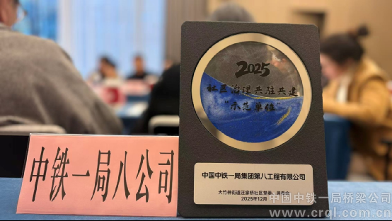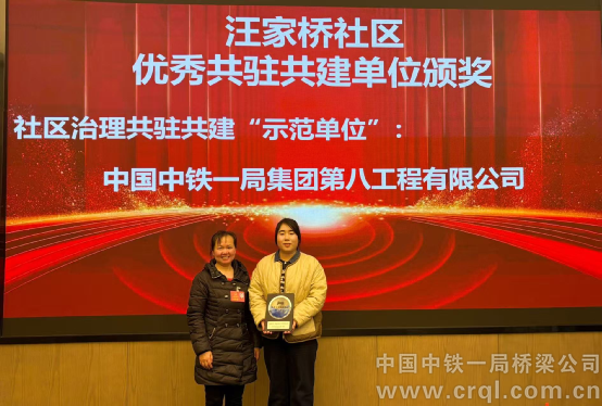 12月19日,在重慶兩江新區大竹林街道汪家橋社區2025年度共建單位表彰大會上,中鐵一局八公司被授予社區治理共駐共建“示范單位”榮譽稱號,以表彰其在社區文化共建與志愿服務中作出的突出貢獻。