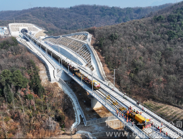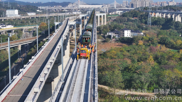 12月19日,在位于江西九江的中鐵一局昌九高鐵施工現(xiàn)場,隨著鋪軌車將第一對500米長鋼軌平穩(wěn)鋪設到位,昌九高鐵正式進入全線鋪軌階段。
