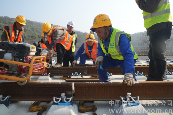 施工現(xiàn)場作業(yè)人員正在連接鋼軌