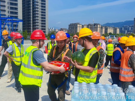 活動現(xiàn)場,史維康代表公司向奮戰(zhàn)在一線的人員表達了感謝與敬意。他強調,當前正值全國高溫、南方汛情多發(fā)的關鍵時期,項目部要始終堅持“人民至上、生命至上”的原則,強化安全質量預防監(jiān)督、過程管控,提高應急處置能力,確保全體參建員工身體健康。隨后,史維康與項目領導班子等人為一線建設者們送上了礦泉水、涼茶、西瓜等防暑降溫物資。