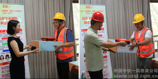 活動中,禾木社會工作服務中心主任李秋月向一線工人講解了高溫中暑預防和急救知識。渝北區建筑行業協會主任陳合先、渝北仙桃街道祥和路社區黨委書記倪小花等人為一線工人發放了夏涼被、醫療急救包、藿香正氣液、洗護用品、西瓜等防暑降溫物資,向他們致以崇高敬意和親切問候。