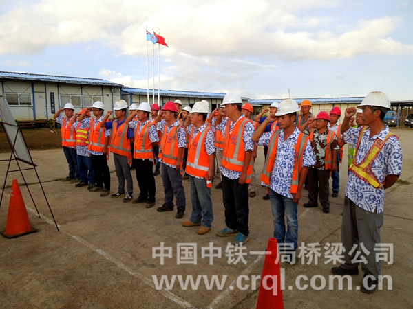 我是一名中國中鐵員工,我工作的安全和質(zhì)量,關(guān)系到企業(yè)的發(fā)展和榮譽!我鄭重承諾:忠誠企業(yè)、恪盡職守、珍愛生命、鑄造真品!我堅決做到:遵守規(guī)章制度、遵守規(guī)范規(guī)程、遵守勞動紀(jì)律,不出事故、不出次品、不留隱患!我將以實際行動,確保企業(yè)生產(chǎn)安全、產(chǎn)品優(yōu)質(zhì)!”6月12日上午,Nabouwalu項目一分部全體中方人員在項目部院內(nèi)安全宣誓。