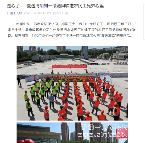 7月6日,每日甘肅網報道:中鐵一局市政環(huán)保公司向項目一線建設者 開展“夏送清涼”慰問活動。