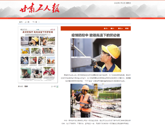 7月20日,甘肅工人報報道:疫情防控中 致敬高溫下的勞動者