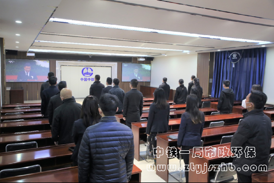 在公司靖樂渠環境治理七館一中心項目,全體參建人員自發聚集在國旗下默哀以表懷念與哀思。各項目建設現場、施工區域等分別以默哀、肅立、鳴笛等方式表達了對江澤民同志的無比崇敬和深切悼念之情。