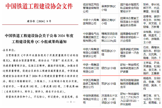 銀巴支線鐵路項(xiàng)目QC成果獲國家級“一等成果”榮譽(yù)稱號及國家實(shí)用新型專利